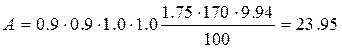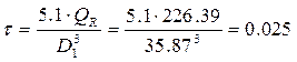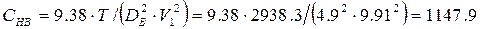 Δ – объемное водоизмещение судна при осадке по летнюю грузовую ватер линию, м3 ; n– число винтов; V – наибольшая скорость переднего хода, уз, при осадке по летнюю грузовую ватерлинию; Данные для расчета: Δ=36897,7 м; n=1; СВ =0,789; DВ =4,9 м; V=15 уз., А2 =1708,4 м2 ; А=24,91 м2 ; АВ =16,9 м2 ; hр =7,07 м; Т=2938,3 кН.