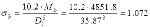Окончательно диаметр баллера руля в будет равен: для стали с пределом текучести Reh=315 Н/мм2 : на переднем ходу: D=Df -D1 =506,3-147,6=358,7 мм на заднем ходу: D=Df -D1 =506,3-71=435,3 мм, для стали с пределом текучести Reh=345 Н/мм2 : на переднем ходу: D=Df -D1 =494,9-144,3=350,6 мм; на заднем ходу: D=Df -D1 =494,9-69,4=425,5 мм. В качестве расчетного диаметра баллера руля примем D=35,87 см., но сначала произведем проверку баллера руля на допустимые напряжения изгиба и кручения: