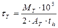 В поперечном сечении кронштейна руля касательное напряжение от действия поперечной силы не должно превышать величины: