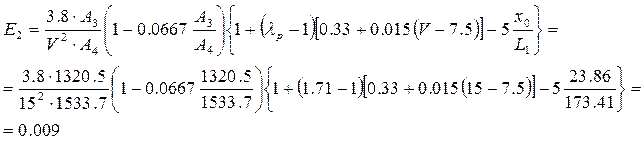 Исходя из данных, что рассчитаны выше, и используя метод линейной интерполяции, найдем Е1 , которое равно 0,025. Е2 определяется по формуле: