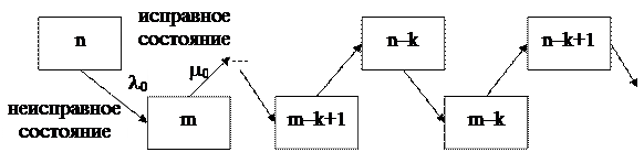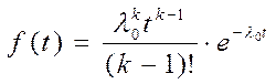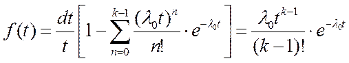 . Плотность вероятности отказа устройства: где l0 исходная интенсивность отказов (ИО) элементов устройства, отказ которого вызывается отказом его элементов. Этому распределению подчиняется время работы резервных устройств и систем. Вероятность k и более отказов, т.е. вероятность отказа устройства:
