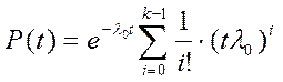 где ti – время до отказа i-от подсистемы. Анализ надежности усложняется когда ti – СВ и необходимо найти функцию плотности распределения суммы случайных величин, т.е. решить задачу композиции функций в ПР слагаемых. В случае, когда поток отказов подсистем является пуассоновским, вероятность P(t,k) того, что за t возникает k отказов выражается по формуле Пуассона: