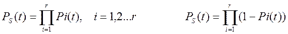 где Рj – это вероятность безотказной работы j-от подсистемы. (2) основано на том, что вероятность отказа системы с параллельной структурой сводится как произведение вероятностей отказа элементов.