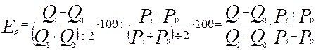 где Q 0 и Q 1 — величина спроса до и после изменения цены, шт. Аналогично для определения процентного изменения цены ∆P в выбранном интервале получаем: