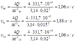 Определяем действительные максимальные скорости течения масла на различных участках системы: