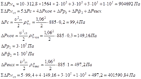 где υ м - скорость масла в местных сопротивлениях рассматриваемого участка системы; ξ – коэффициент сопротивления (значения ξ см. табл. 3 [1]). Виды и количество местных сопротивлений определяются по принципиальной гидравлической схеме привода, при этом учитываются влияние только тех сопротивлений, через которые поток жидкости проходит при обеспечении рабочей подачи подвижного органа машины. Величины потерь давления ΔР для нормализованной гидроаппаратуры выбираются по табл.5 [1].