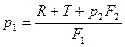 где T – суммарная сила трения, действующая при движении рабочего органа машины, которую при расчете можно ориентировочно принимать T=0,1R; p2 – давление масла в сливной полости цилиндра, которое, если специально не предусматривается создание противодавления, определяется суммарными потерями давления в сливной гидролинии; F1 , F2 – рабочие площади поршня гидроцилиндра, соответсвенно в напорной и сливной плоскостях.