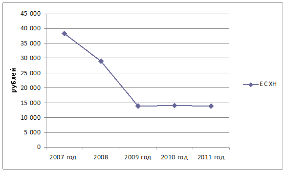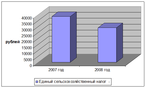 Рисунок 14. ЕСХН до и после приобретения основного средства в 2009 году Следовательно, что ООО «Нива-2», может уменьшить единый сельскохозяйственный налог, путем увеличения расходов, и тем самым решить задачу улучшения машинотракторного парка. ЗАКЛЮЧЕНИЕ За прошедшие 10 лет малое предпринимательство постоянно сталкивается с множеством трудностей, которые заставляют его действовать сообразно складывающейся ситуацией и нередко вне правового поля, придумывать хитроумные схемы занижения налогов или вовсе ухода от их уплаты. Субъекты малого предпринимательства являются стабильным источником налоговых поступлений, важнейшим способом преодоления дотационности местных бюджетов, малое предпринимательство является необходимым и неотъемлемым субъектом рынка. Государством неоднократно применялись меры для развития малого бизнеса. Это отражается в ходе принятия в 1995 г. Федерального закона «О государственной поддержке предпринимательства РФ» и в 1996 г. Федерального закона «Об упрощенной системе налогообложения, учета и отчетности для субъектов малых предприятий». Однако данные законы не проявили себя в полной мере и не обеспечили решения задач наиболее полного учета объектов обложения индивидуальных предпринимателей и малых предприятий. Очередным шагом для дальнейшего развития данного сектора рынка, а также логичным продолжением упрощенной системы налогообложения был закон «О едином налоге на вмененный доход для определенных видов деятельности» принятый Государственной думой в 1998 г. С 1 января 2002 г. вступили в силу раздел 8 «Специальный налоговый режим» и соответствующие им главы Налогового кодекса Российской Федерации (часть вторая): 1. Глава 26.1 «Единый сельскохозяйственный налог» – с 1.01.2002 г. 2. Глава 26.2 «Упрощенная система налогообложения» – с 1.01.2003 г. 3. Глава 26.3 «Система налогообложения в виде единого налога на вмененный доход для отдельных видов деятельности» – с 1.01.2003 г. 4. Глава 26.4 «Система налогообложения при выполнении соглашения о разделе продукции» – с 1.01.2004 г. В основе всех этих указанных режимов налогообложения лежит замена уплаты совокупности установленных законодательством Российской Федерации федеральных, региональных и местных налогов и сборов уплатой единого налога, исчисляемого по результатам хозяйственной деятельности юридических лиц и индивидуальных предпринимателей за отчетный период. Применение вмененного налога в России вряд ли определяется только фискальными целями. При этом методика налога не отличается гибкостью и не может учитывать всю совокупность факторов, влияющих на результаты финансовой деятельности хозяйствующих лиц. Универсальным показателем является прибыль (доход) организации. Именно налог на прибыль отвечает всем требованиям либеральной рыночной экономики. Однако, коль скоро отдельные представители бизнеса «уходят» от налога на прибыль, а налоговые органы не в силах его собрать в полной мере, вводится вмененный налог, основная задача которого – перевести всех потенциальных плательщиков в легальный сектор экономики. Поэтому вмененный налог должен носить временный характер. Установленный законодательством Российской Федерации специальный налоговый режим в виде единого сельскохозяйственного налога предоставляет субъектам малого предпринимательства возможнос