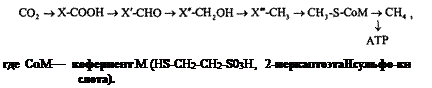 Обнаружены три типа сульфитредуктаз, содержащих особый гем – сирогем. Другие сульфитредуктазы содержат цитохромы.При использовании в качестве донора электронов молекулярного водорода, а для конструктивных процессов – органических веществ сульфатвосстанавливающие бактерии растут как хемолитогетеротрофы с образованием на 1 моль сульфата 3 молей АТР, часть которых расходуется на активацию сульфата. Жизнедеятельность таких бактерии в природных условиях приводит к накоплению значительных количеств сероводорода, который может окисляться, образуя отложения серы. Эти бактерии вызывают также анаэробную коррозию металлов. Карбонатное дыхание. При карбонатном дыхании в качестве конечного акцептора электронов используется С02 : 4Н2 + С02 -> СН4 + 2Н2 0.