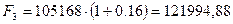 где P - настоящее значение вложенной суммы денег, F - будущее значение стоимости денег, n - количество периодов времени, на которое производится вложение, r - норма доходности (прибыльности) от вложения. В конце первого года получим: