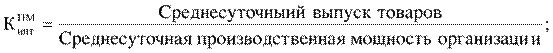 Если значения показателей близки к единице, то оборудование используется с высокой степенью загрузки, а производственная программа соответствует производственной мощности. Производственная мощность организации характеризует возможный выпуск товаров при достигнутом или намеченном уровне техники, технологии и организации производства. Степень использования производственных мощностей характеризуется следующими коэффициентами: - общий коэффициент: