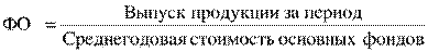 Коэффициент интенсивной нагрузки оборудования может быть больше единицы, равным единице и меньшим единицы. Обобщающим показателем, характеризующим использование оборудования по времени и по производительности, является коэффициент интегральной нагрузки 6 : Кинтегр = Кэкст * Кинт . (1.19) Эффективность использования основных средств производственных фондов характеризуется соотношением темпов роста выпуска продукции и темпов роста основных фондов, а также показателями фондоотдачи, фондоемкости, фондовооруженности и производительности труда. Обобщающим показателем служит фондоотдачта – объем произведенной за год (или другой период) продукции, приходящейся на 1 руб. основных фондов.