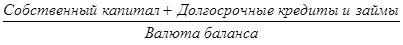 2. Коэффициент финансовой устойчивости – рассчитывается как отношение устойчивых пассивов - собственных средств и долгосрочных займов и кредитов, к итогу баланса; показывает, какая часть имущества организации сформирована за счет перманентного капитала (капитала, приравненного к собственному):