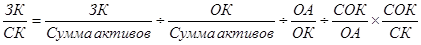 4. Коэффициент капитализации (финансовой активности, финансового риска, плечо финансового рычага) – рассчитывается как соотношение заемных и собственных средств и показывает размер заемных средств, приходящихся на единицу собственных: