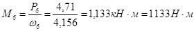 Р1 =Рдв =5,5 кВт ; ηI = 0,97 (по условию) Р2 =ηI ∙ Р1 = 0,97 ∙ 5,5 = 5,335 кВт аналогично для остальных передач: Р3 =Р2 = 5,335 кВт ; ηII = 0,96 (по условию) Р4 =ηII ∙ Р3 = 0,96 ∙ 5,335 = 5,122 кВт Р5 = Р4 = 5,122 кВт ; ηIII = 0,92 (по условию) Р6 =ηIII ∙ Р5 = 0,92 ∙ 5,122 = 4,71 кВт ηприв. = ηI ∙ ηII ∙ ηIII = 0,97 ∙0,96 ∙0,92 = 0,857 Определим вращающие моменты для каждого вала