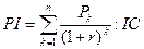 Pk– годовой доход от инвестиций в k-ом году (k=n), n – количество лет, в течение которых инвестиции будут генерировать доход, r – коэффициент дисконтирования, устанавливаемый инвестором исходя из ежегодного % возврата инвестиций, который он хочет иметь на вложенный капитал, i – планируемый уровень инфляции, ICj – объем инвестиций, вкладываемых в j-ом году, m – количество лет, в течение которых инвестируется проект. Очевидно, что при NPV >0 проект эффективен, при NPV<0 неэффективен, NPV=0 проект ни прибыльный и не убыточный. 2.Рентабельность инвестиций. В отличие от чистого дисконтированного дохода индекс рентабельности является относительным показателем. Он рассчитывается по формуле: PI=PV/IC PI – индекс рентабельности.