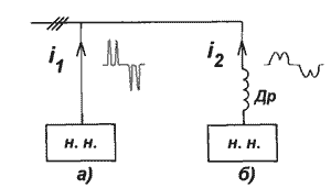 Способы подавления гармоник тока в системах электропитания Гармоники тока, создаваемые нелинейными нагрузками, могут представлять собой серьезные проблемы для систем электропитания. Гармонические составляющие представляют собой токи с частотами, кратными основной частоте источника питания. Высшие гармоники тока, накладываемые на основную гармонику, приводят к искажению формы тока. В свою очередь искажения тока влияют на форму напряжения в системе электропитания, вызывая недопустимые воздействия на нагрузки системы. Наиболее распространенным оборудованием, генерирующим высшие гармоники тока в сеть, являются: · статические преобразователи (выпрямители, системы бесперебойного питания, тиристорные регуляторы, импульсные источники питания и т.д.); · газоразрядные осветительные устройства и электронные балласты; · электродуговые печи постоянного и переменного тока; · сварочные аппараты; · устройства с насыщающимися электромагнитными элементами; · электродвигатели переменного тока с регулируемой скоростью вращения; · специальные медицинские приборы и т.д. Указанные устройства являются генераторами высших гармоник тока в системе электропитания. В зависимости от места своего подключения и процентного соотношения с линейными нагрузками в этой системе они тем или иным образом будут оказывать влияние на другие нагрузки. Увеличение общего действующего значения тока при наличие высших гармонических в системе приводит к перегреву всего оборудования распределенной сети электропитания, снижению коэффициента мощности, снижению электрического и механического КПД нагрузок, ухудшению характеристик защитных автоматов и завышению требуемой мощности автономных электроэнергетических установок. Рассмотрим основные способы подавления высших гармоник тока путем применения: · линейных дросселей, · пассивных фильтров, · разделительных трансформаторов, · магнитных синтезаторов, · активных кондиционеров гармоник. 1. Включение линейных дросселей.Простейшим способом снижения уровня генерируемых нелинейными нагрузками высших гармоник тока во внешнюю сеть является последовательное включение линейных дросселей (рис. 1). Такой дроссель имеет малое значение индуктивного сопротивления на основной частоте 50 Гц и значительные величины сопротивлений для высших гармоник, что приводит к их ослаблению. При этом снижается коэффициент амплитуды (крест-фактор) Ka и коэффициент искажения Kи входного тока.