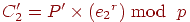 – первообразный корень в группе Рис. 8 показывает генерацию ключей, шифрование и дешифрование в криптосистеме Эль-Гамаля. Рис. 8 Генерация ключей, шифрование, и дешифрование в криптосистеме Эль-Гамаля Определение общедоступного и частного ключей • Выбор двух взаимно простых чисел p и e1 , e1 <p • Выбор значения секретного ключа d, d<p • Определение значения открытого ключа e2 из выражения: e2 =e1 d (mod p) • Общедоступный ключ (e1 ,e2 ,p) может быть объявлен публично Боб использует данный алгоритм, чтобы создать свой общедоступный и частный ключи. Любой может передавать сообщение Бобу, используя открытый ключ. Процесс шифрования сообщения представлен ниже. Алгоритм шифрования сообщения P • Выбор случайного числа r, удовлетворяющего условию: 0≤r<p-1 и НОД(r,p-1)=1 • Определение значения C1 из выражения: C1 =e1 r (modp) • Определение значения C2 из выражения: C2 =e2 r P(modp) • Криптограмма С, состоящая из C1 и C2 , отправляется получателю • Получатель расшифровывает криптограмму с помощью выражения: P = [C2 (C1 d )-1 ]modp Боб выбирает 11 в качестве p. Затем он выбирает e1 = 2. Обратите внимание, что 2 – первообразный корень в Z11* (см. приложение J). Затем Боб выбирает в = 3 и вычисляет e2 = e1 d = 8. Получены открытые ключи доступа – (2, 8, 11) и секретный ключ – 3. Алиса выбирает r = 4 и вычисляет C1 и C2 для исходного текста 7. Исходный текст: 7 C1 = e1 r mod 11 = 16 mod 11= 5 mod 11 C2 = (P × e2 r ) mod 11 = (7 × 4096) mod 11 = 6 mod 111 Зашифрованный текст: (5, 6) Боб получает зашифрованные тексты (5 и 6) и вычисляет исходный текст. Зашифрованный текст: [C1 × (C2 d )-1 ] mod 11 = 6 × (53 )-1 mod 11 = 6 × 3 mod 11 = 7 mod 11 Исходный текст: 7 10. Безопасность криптосистемы Эль-Гамаля · Атаки малого модуля Если значение модуля p не является достаточно большим, Ева может использовать некоторые эффективные алгоритмы, чтобы решить проблему дискретного логарифма и найти в или r. Если p мало, Ева может просто найти в = loge1 e2 mod p и сохранить его, чтобы расшифровать любое сообщение, передаваемое Бобу. Это может быть сделано единожды и работать, пока Боб использует те же самые ключи. Ева может также использовать значение случайного числа r, применяемого Алисой в каждой передаче r = loge1 C1 mod p. Оба этих случая подчеркивают, что безопасность криптосистемы Эль-Гамаля зависит от решения проблемы дискретного логарифма с очень большим модулем. Поэтому рекомендовано, что p должны быть по крайней мере 1024 бита (300 десятичных цифр). · Атака знания исходного текста Когда Алиса использует одно и то же значение случайного показателя степени r для того, чтобы зашифровать два исходных текста P и P', Ева обнаруживает P', если она знает P. Предположим, что 1. 2. Поэтому рекомендовано, чтобы Алиса брала при каждой передаче новое значение r, чтобы сорвать атаки. Чтобы криптосистема Эль-Гамаля была безопасной, модуль p должен содержать по крайней мере 300 десятичных цифр, новых для каждой шифровки. 11. Алгоритм обмена ключами Диффи-Хеллмана Алгори́тм Ди́ффи – Хе́ллмана – алгоритм, позволяющий двум сторонам получить общий секретный ключ, используя незащищенный от прослушивания, но защищённый от подмены, канал связи. Этот ключ может быть использован для шифрования дальнейшего обмена с помощью алгоритма симметричного шифрования. Алгоритм был впервые опубликован Уитфилдом Диффи и Мартином Хеллманом в 1976 году. Пускай мы хотим переслать сообщение приятелю так, чтобы никто не подслушал. У нас есть достаточно стойкий способ шифр