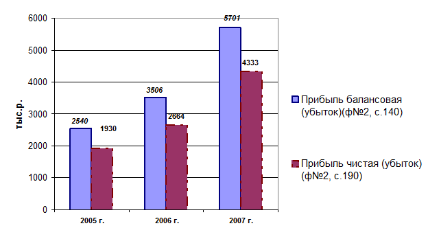 Рис. 1.14.Динамика фондоотдачи и стоимости основных производственных фондов ООО «Универсал» за 2005-2007 гг. Динамика прибыли ООО «Универсал» представлена на рис. 1.15.