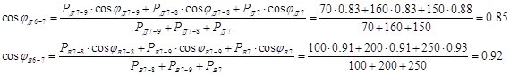 Пользуясь расчетной схемой, определяем средневзвешенный коэффициент мощности: Участок сети 7-8: