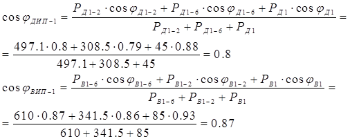 Определим более точные значения коэффициента мощности для ТП1 и ТП2 по формуле: Для ТП1:
