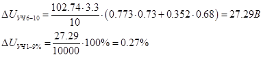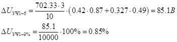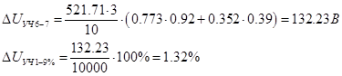 Определим потерю напряжения на участках в % по следующей формуле: