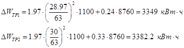 где DWтр – потери в трансформаторе, кВт.ч; SDW – суммарные потери, кВт.ч; Получаем: