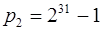 = 2, 3, 5, 7, 13, 17, 19 мы получаем простые числа Мерсенна: 3, 7, 31, 127, 8191, 131071, а при р