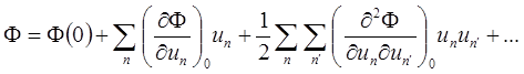 где индекс 0 указывает, что все ип положены равными нулю. Не ограничивая общности, полагаем потенциальную энергию основного состояния Ф(0) = 0. Так как значение ип = 0 соответствует равновесию системы, то