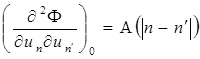 Выражение для силы fn может быть получено и другим путем. Потенциальная энергия решетки Ф есть функция от отклонений атомов ип . Разлагая Ф в ряд по степеням малых отклонений ип , получим