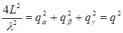 Уравнение (2.2.11) – уравнение сферы радиуса 2L/λ в обратном пространстве волновых чисел q[2]. Если учесть, что внутри бруска могут распространяться волны разной длины, то целые числа qx , qy , qz очень мало отличаются друг от друга, следовательно, величину q можно считать квазинепрерывной. С другой стороны число q определяет все возможные фононные состояния. Воспользуемся принципом соответствия: от стоячей волны перейдем к картине гармонических осцилляторов. Как видно число всевозможных стоячих волн определяется набором чисел qx , qy , qz :