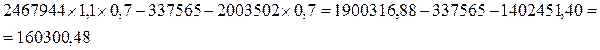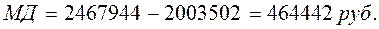 В данном варианте рост выручки от реализации произошел в результате увеличения натурального объема продаж на 10% при сохранении цен 2005 года. Поэтому увеличились переменные затраты пропорционально росту объема продаж. Прибыль в данном случае была определена прямым счетом как разница между выручкой от реализации и затратами, а процент роста прибыли – величина, производная от суммы прибыли. Такой рост прибыли обеспечивается увеличением выручки от продаж и переменных затрат без роста постоянных затрат, удельный вес которых в выручке от реализации мал. Он составляет 13,68%, а удельный вес переменных затрат – 81,18%.Допустим, что при прочих равных условиях переменные затраты в выручке 2005 года равны 18,82%, а постоянные соответственно – 76,04%. Тогда переменные затраты в 2005 году составят 464467,06 руб., а постоянные – 1876624,62 руб. Таким образом, прибыль от реализации в плановом периоде будет равна: