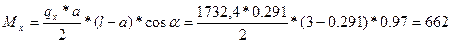 Где qx = q*cosa = 1786*0,97 = 1732,4 Н/м. qy = q*sina = 1786*0,243 = 434 Н/м.
