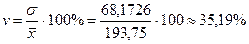 Вывод: Величина коэффициента вариации говорит об однородности изучаемой совокупности, так, если вариация больше 33%, то это говорит о большой колеблемости признака в изучаемой совокупности.