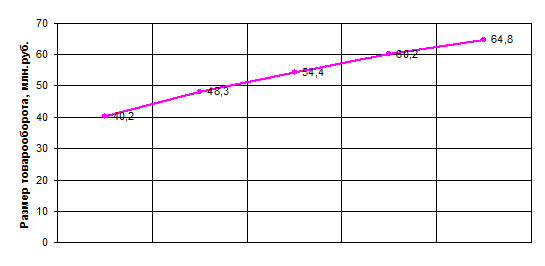 2001 2002 2003 2004 2005 Время, годы Рис. 3 Вычислим прогнозное значение товарооборота в 2008 г: