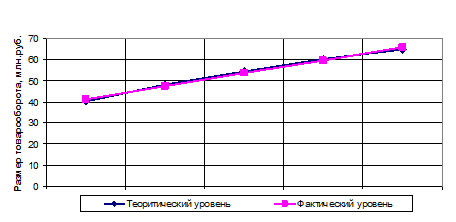 Фактические и теоретические уровни ряда динамики нанесем на график: