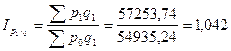 или 104,2 %, т.е. в целом цены на продукцию увеличились на 4,2 %.