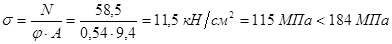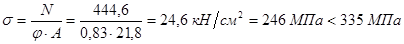 Прочность шва обеспечена. Прочность шва, прикрепляющего раскос Р4 к верхнему поясу, равна: