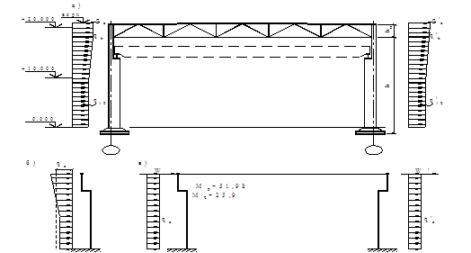 Рис. Схема загружения и эпюры При изменении направления силы Ветровая нагрузкаВетер слева. Определяем значения моментов