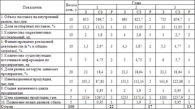 МИНИСТЕРСТВО ОБРАЗОВАНИЯ И НАУКИ УКРАИНЫ ДОНЕЦКИЙ НАЦИОНАЛЬНЫЙ ТЕХНИЧЕСКИЙ УНИВЕРСИТЕТ ИНСТИТУТ ПОСЛЕДИПЛОМНОГО ОБРАЗОВАНИЯ КОНТРОЛЬНАЯ РАБОТА по дисциплине “УПРАВЛЕНИЕ ПОТЕНЦИАЛОМ ПРЕДПРИЯТИЯ ” Выполнил ст. гр. ЦЕПР‑09-2п _____________ Перепелкин Е.А. (подпись, дата) Проверила _____________ Шилова Л. И. (подпись, дата) ДОНЕЦК – 2011 ЗАДАНИЕ 1. ОПТИМИЗАЦИЯ ПОТЕНЦИАЛА ПРЕДПРИЯТИЯ ГРАФО-АНАЛИТИЧЕСКИМ МЕТОДОМ Обосновать направления развития потенциала предприятия на основе данных по 4 блокам: - производство и сбыт; - организационная структура и менеджмент; - маркетинг; - финансы. 1. Формирование исходных данных Таблица 1 - Исходные данные для анализа блока «Производство, распределение и сбыт продукции» Таблица 2 – Рейтинговая оценка блока «Производство, распределение и сбыт продукции» где З – значение показателя; СЗ – скорректированное значение показателя; Р – рейтинг, выбираемый по наилучшему показателю с учетом коэффициента чувствительности. Скоректированное значение (СЗ) определяется по формуле: