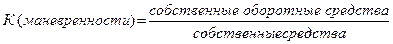 (3.1) Предприятие не имеет долгосрочных заемных средств, следовательно, данный коэффициент не рассчитывается. 4. Коэффициент маневренности собственных средств характеризует степень мобильности использования собственных средств. Показывает долю собственных оборотных средств в общей сумме собственных средств.
