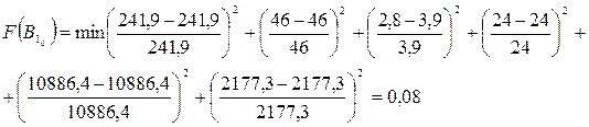 = ∆P(∆a) = Pa – P0 = 645 – 477 = 168 тыс.руб. ∆P(∆b) = Pb – Pa = 667 – 645 = 22 тыс.руб. ∆P(∆c) = Pc – Pb = 886 – 667 = 219 тыс.руб. ∆P(∆d) = P1 – Pc = 2034 – 886 = 1148 тыс.руб. ∆P = P1 – P0 = ∆P(∆a) + ∆P(∆b) + ∆P(∆c) + ∆P(∆d) проверка № 2 ∆P = 2034 – 477 = 1557 тыс.руб. 168+22+219+1148 = 1557 тыс.руб. Из расчетов видно, что прибыль от реализации выросла на 1557 тыс. руб. за счет: увеличения числа рабочих на 12 человек; увеличения среднего числа отработанных дней на 8; увеличения средней дневной выработки на 0,23 тыс. руб. увеличения прибыли на 1 тыс. руб. работ на 0,13 тыс. руб. Комплексная оценка На основе комплекса показателей рассчитывается один, по которому производится оценочное сравнение методом «расстояний Эвклида». Сравним деятельность двух строительных компаний, используя этот метод. Пользуясь этим методом, исходим из того, что показатель комплексной оценки должен учитывать не только абсолютные значения сравниваемых показателей, но и их близость к наилучшим оценкам. Исходные данные сведем в аналитическую таблицу (табл. 3).