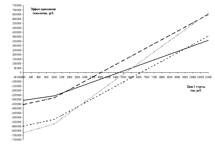 Рис. 3.2. Целесообразность формирования составительских маршрутов по сравнению с групповой отправкой Анализ результатов расчетов показывает, что по мере повышения цены груза прирост провозных плат при использовании малосоставных маршрутов компенсируется снижением экономических потерь грузовладельца за счет снижения срока доставки грузов. При формировании составительских маршрутов, следующих по пассажирским ниткам графика на расстояния 2000 км и 4000 км, эффект их применения достигается при перевозке грузов, стоимость которых превышает 4 млн. руб./т и 5,6 млн. руб./т соответственно. При расстоянии перевозки 2000 км железнодорожный транспорт получит дополнительную прибыль в размере 206,6 тыс. руб., снижение совокупных затрат грузовладельцев в зависимости от цены груза составит от 43,7 тыс. руб. до 648,3 тыс. руб. на партию груза. При расстоянии перевозки 4000 км применение малосоставных составительских маршрутов, следующих по пассажирским ниткам графика движения поездов, позволит в расчете на партию грузов получать железнодорожному транспорту дополнительную прибыль в размере 371,4 тыс. руб. Снижение совокупных затрат грузовладельцев в зависимости от цены груза составит от 46,0 тыс. руб. до 666,2 тыс. руб. на партию груза. Положительный эффект от формирования маршрутов, следующих грузовой скоростью на те же расстояния, возникает при более высоких ценах: 5,2 млн. руб./т и 6,6 млн. руб./т. Получается, что при перевозке более дорогих грузов целесообразно формировать малосоставные составительские маршруты, следующие по пассажирским ниткам графика. Это объясняется более высокой скоростью доставки при перевозке маршрутом, следующим по пассажирским ниткам графика движения поездов по сравнению с маршрутом, следующим грузовой скоростью, и групповой отправкой. Формирование составительских маршрутов на расстояние 2000 км позволит железнодорожному транспорту получать дополнительную прибыль в размере 177,6 тыс. руб. на партию, экономия потерь грузовладельцев в зависимости от цены груза составит от 18,9 тыс. руб. до 360 тыс. руб. на партию груза. При расстоянии перевозки 4000 км применение малосоставных составительских маршрутов, следующих грузовой скоростью, позволит в расчете на партию грузов увеличить прибыль железнодорожного транспорта на 327,8 тыс. руб. Снижение совокупных затрат грузовладельцев в зависимости от цены груза составит от 35,0 тыс. руб. до 407,1 тыс. руб. на партию груза. Таким образом, взаимная заинтересованность субъектов перевозочного процесса в применении технологий, обеспечивающих сокращение времени доставки грузов, заключается в снижении затрат грузовладельцев, связанных с продолжительностью доставки, и в получении железными дорогами прибыли от перевозок. Учитывая, что во внутреннем сообщении контейнеропригодные грузы перевозятся в основном автомобильным транспортом, грузовладелец, как правило, выбирает между железнодорожным и автомобильным транспортом и стремится минимизировать совокупные затраты на перевозку партии груза «от двери до двери». При использовании для перевозок контейнеров железнодорожного транспорта эти затраты, как правило, складываются из следующих элементов: − затраты на погрузку (выгрузку) груза в контейнеры; − затраты на погрузку (выгрузку) контейнеров на автомобильный транспорт в пунктах отправления (прибыти