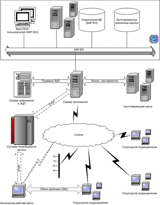 Анализ системы мотивации работников эксплуатации показал, что необходимо учитывать особенности перевозок грузов исходя из их доходности. При перевозке высокоценных грузов решающим показателем является оборот вагона, поэтому весь комплекс стимулирующих мер следует направить на улучшение этого показателя на протяжении всего перевозочного цикла: от загрузки вагона до его разгрузки и подачи под следующую погрузку. При перевозке массовых низкодоходных грузов работников необходимо мотивировать за наиболее производительное использование подвижного состава по мощности. То есть проблема «скорость-вес» является определяющей при поощрении работников эксплуатационного контингента железных дорог. Дифференциации системы мотивации работников способствует раздельный учет перевозок грузов в зависимости от их доходности, который возможно вести, используя данные статистической отчетности. На железных дорогах в перевозках высокодоходных и низкодоходных грузов задействован один и тот же контингент, и могут возникнуть сложности при его распределении между перевозками. Все должны стремиться к организации перевозок прибыльных грузов. В связи с этим следует предусмотреть, чтобы премии за осуществление перевозок ценных грузов были распределены между всеми работниками, как непосредственно занятыми на перевозках, так и не задействованными в них. Суммы этих поощрений будут разными в зависимости от степени участия работников в перевозках. Итак, система мотивации работников эксплуатационного штата железных дорог должна быть дифференцирована в зависимости от структуры перевозимых грузов. Предложенные подходы к формированию многофакторной системы материального стимулирования работников железнодорожного транспорта на основе раздельного учета перевозимых грузов позволят значительно улучшить результаты работы отрасли как при перевозке высокодоходных, так и низкодоходных грузов и таким образом всесторонне отразить деятельность железных дорог и ОАО «РЖД» в целом и укрепить его конкурентные позиции на транспортом рынке. 5.ЕДИНАЯ КОРПОРАТИВНАЯ ВТОМАТИЗИРОВАННАЯ СИСТЕМА УПРАВЛЕНИЯ ФИНАНСАМИ И РЕСУРСАМИ ЕК АСУФР/ЖД Система построена на технологии хранилища данных SAP BW с использованием WEB-доступа со всех рабочих мест в отрасли. Для автоматизации процессов сбора, консолидации, распределения и предоставления налоговой отчетности в структуре РЖД, в рамках ЕК АСУФР создается автоматизированная система сбора налоговой отчетности. Система сбора налоговой отчетности создается в рамках ЕК АСУФР в соответствии со следующими нормативными документами: · Концепция информатизации железнодорожного транспорта России, одобренная на расширенном заседании Коллегии МПС РФ 28 февраля 1996 г. · Программа информатизации железнодорожного транспорта России напериод 1996-2005 гг., утвержденная Постановлением Коллегии МПС России №5 от 28 февраля 1996 г., · Концепция создания Единой Корпоративной Автоматизированной Системы Управления Финансами Российских Железных Дорог, Москва, июнь 1999 г., · Указание № 281У от 20 октября 1999 г. «О внедрении ЕК АСУФР на сети Российских железных дорог», · Указание ЦФ МПС № 35 от 02 ноября 1999 г. «О внедрении ЕК АСУФР в Департаменте финансов МПС», · Концепция информатизации бухгалтерского учета на железнодорожном транспорте