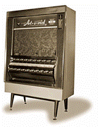 | Торговый автомат – монетное устройство для продажи товаров. Автоматы принимают монеты с помощью монетоприемника и купюры посредством купюроприемника. История. 1 век н.э. – впервые описание автоматических устройств для продажи «священной» воды и омовения рук в храмах. Начало 17 века – в Англии появились устройства для продажи табака порциями. 1851 год – в США выданы первые патенты на торговые автоматы (продавали жевательную резинку). Первоначально материалом для изготовления торговых автоматов служило дерево, железо и стекло. Поэтому, первые привлекали скорее своей необычностью, нежели внешним видом и содержимым, были невзрачны, и зачастую покупатель не видел товара до самой покупки, так как стенки у автоматов были непрозрачными. Большинство автоматов было рассчитано на самые мелкие монетки. Купить их содержимое мог позволить себе даже ребенок – ведь в большинстве случаев именно на детей и были рассчитаны эти автоматы. Уже с начала 20 века появляются торговые машины, практически повторяющие обликом современные: в большинстве случаев они яркие, привлекающие, с прозрачными стенками. Успех таких автоматов у продавцов обуславливала простота обслуживания: с самого своего появления автоматы не требовали электричества, постоянного обслуживающего персонала и были полностью механическими.