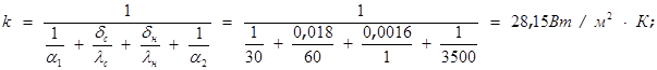 2. Коэффициент теплопередачи для плоской стенки с накипью: