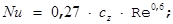 где Re – число Рейнольдса; сz – коэффициент, учитывающий ухудшенную теплоотдачу первых рядов труб и зависящий от общего числа рядов в пучке. сz = 0,9.