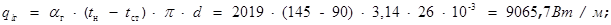 Так как Q = 46,5кВт/м2 < qпр =3282кВт/м2 , то в котле происходит пузырьковое кипение пара. Коэффициент теплоотдачи определяем по формуле: