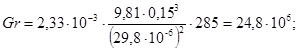 где н – кинематическая вязкость воздуха н = 79,38 · 10-6 м2 /с;
