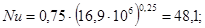 где Nu – критерий Нуссельта для воздуха при свободной конвекции с поверхности паропровода:
